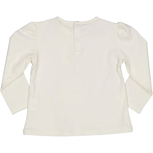T-SHIRT IN JERSEY DI COTONE STRETCH, MODELLO CON LEGGERO ARRICCIO SULLE MANICHE ED APERTURA FACILITATA CON BOTTONCINI A PRESSIONE SUL DIETRO. STAMPA BAMBOLINA SUL DAVANTI CON SCRITTA GLITTER ORO. DISPONIBILE DALLA 3 ANNI ALLA 10 ANNI. COMPOSIZIONE 95% COTONE, 5% ELASTAN.