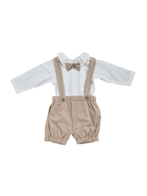 QUESTO COMPLETO È L,IDEALE PER LE OCCASIONI SPECIALI COME BATTESIMI, MATRIMONI O FESTE DI FAMIGLIA. COMBINA IL COMFORT DEI TESSUTI MORBIDI CON UN DESIGN DA PICCOLO GENTILUOMO, GARANTENDO STILE E COMODITÀ.
