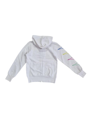 QUESTA FELPA GARZATA CON CAPPUCCIO UNISCE LA FRESCHEZZA DEL BIANCO PURO CON DETTAGLI GRAFICI DINAMICI, CREANDO UN CAPO VERSATILE E DISTINTIVO, PERFETTO PER UN LOOK SPORTIVO E DI TENDENZA. DISPONIBILE DALLA 8 ANNI ALLA 16 ANNI.