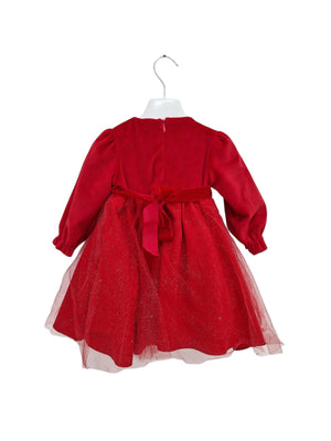 QUESTO INCANTEVOLE VESTITO ROSSO È PERFETTO PER RENDERE OGNI BAMBINA PROTAGNOSITA DURANTE LE FESTE E GLI EVENTI SPECIALI. IL CORPINO IN TESSUTO MORBIDO E VELLUTATO DONA UN LOOK RAFFINATO, MENTRE LA GONNA AMPIA IN TULLE GLITTERATO AGGIUNGE UN TOCCO DI MAGIA E LUMINOSITÀ AD OGNI MOVIMENTO. IN VITA, UNA CINTURA IN VELLUTO CON DELICATO FIORE APPLICATO E PICCOLA PERLA CENTRALE IMPREZIOSISCE L'ABITO CON UN DETTAGLIO ROMANTICO. SUL RETRO, LA CHIUSURA CON CERNIERA NASCOSTA E IL FIOCCO REGOLABILE ASSICURANO UNA VESTIBILITÀ COMODA E IMPECCABILE. UN ABITO IDEALE PER NATALE. CERIMONIE, FESTE DI COMPLEANNO E SERVIZI FOTOGRAFICI, PENSATO PER CHI AMA LO STILE CLASSICO E RAFFINATO. DISPONIBILE DALLA 9 MESI ALLA 30 MESI.